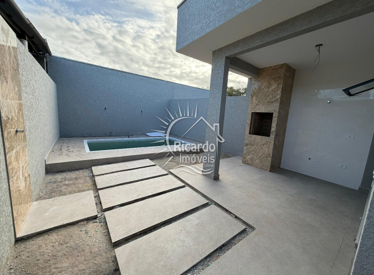 Sala e cozinha em conceito aberto com pé direito alto, 03 Quartos (sendo 01 suíte), 01 banheiro social, área gourmet com Churrasqueira, Piscina, Lavabo e área de serviço, garagem para 02 carros.